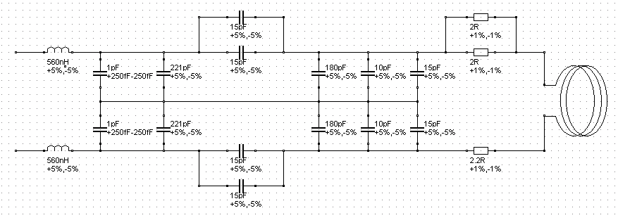 My final circuit consisting of EMC filter, antenna and matching circuit, as i finally made it is shown below.